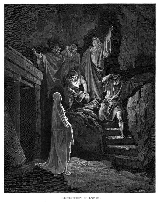 I wonder if Lazarus was filled with resolve, given another shot at life. He will never take his sister for granted again. He will always say please and thank-you. He will not squander one more precious moment of life getting angry in traffic.