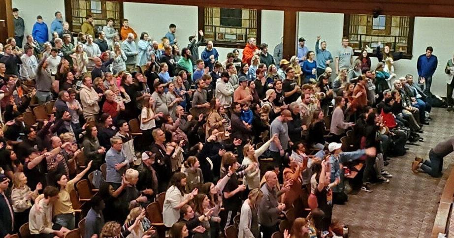 As I write this, I have a YouTube livestream open and playing in the background, listening to the singing in the chapel at Asbury University in Kentucky - where a regular chapel service that started 12 days ago has not yet ended. From everything I have seen, the “revival” is a quiet one - it’s mostly just singing led by college students - on simple acoustic guitar and piano. I cannot claim to understand it, all I know is that every time I have tuned in over the past few days, it has made me a little teary. Which surprises me. I have not always been prone to mixing sentimentality and religion. Irony and religion, fine, but this Gen Xer usually recoils from anything that smacks of sap. But here I am, longing to sing in that room with 1,000 other open-hearted people.