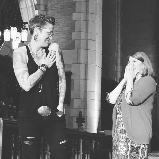 RHE and me at the first Why Christian conference held in Minneapolis in 2015. We founded and hosted WX together in 4 cities over the period of 5 years and it was a peak experience of my life. I broke down absolutely sobbing after everyone had left Rachel’s funeral, partly because the magic things that happened when she and I collaborated are over now. I miss her every day.